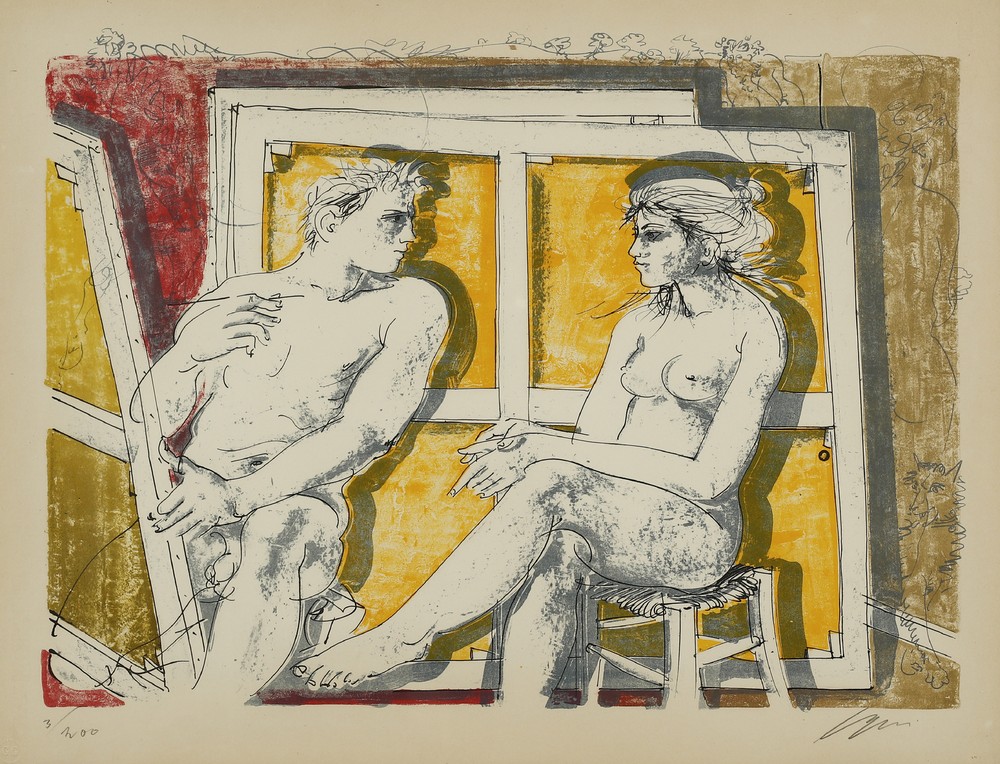 ERNI HANS (1909 - 2015) LE PEINTRE ET SON MODELE. litografia. Cm 65,50 x 50,00. firma e tiratura a matita, es 3/200