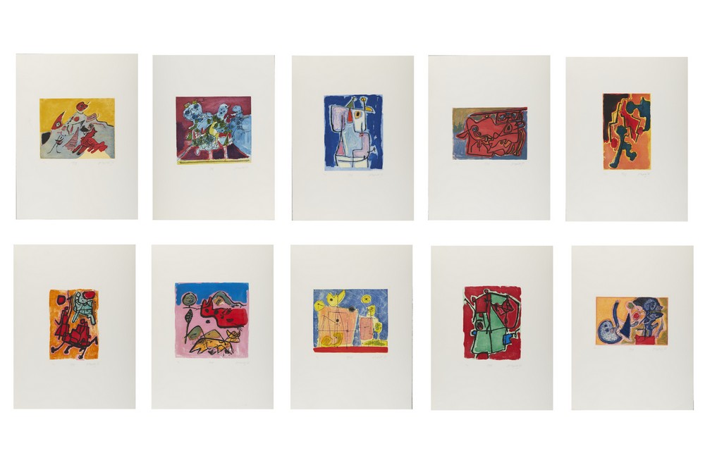CORNEILLE (1922 - 2010) CARTELLA COMPOSTA DA N. 10 FOGLI. Acquaforte a colori. Cm 60,50 x 80,50. ogni foglio presenta firma, tiratura e titolo a matita, es. XXI/L