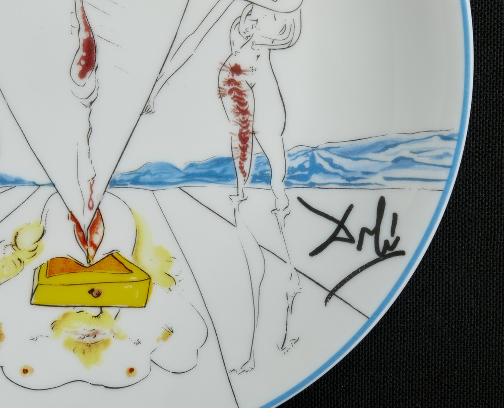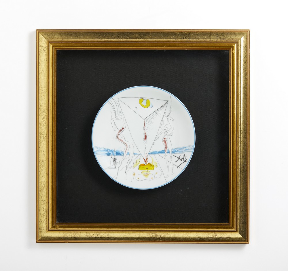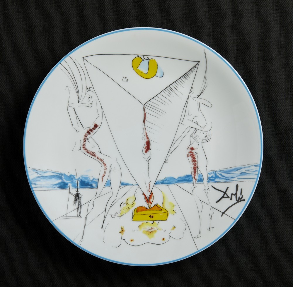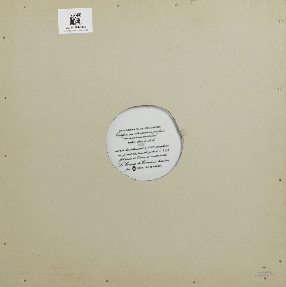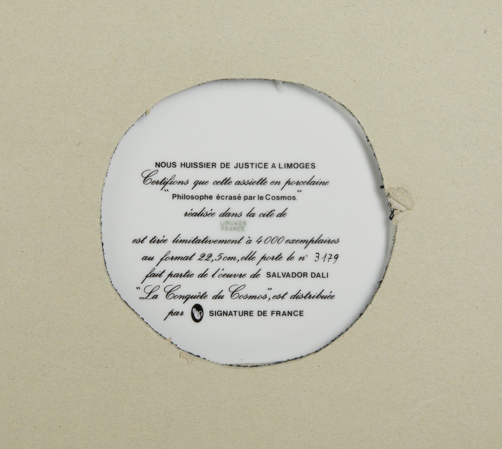 DALI' SALVADOR (1904 - 1989) PHILOSOPHE ECRASE PAR LE COSMOS. Porcellana Limoges. Cm 22,50 x 22,50. firma a stampa