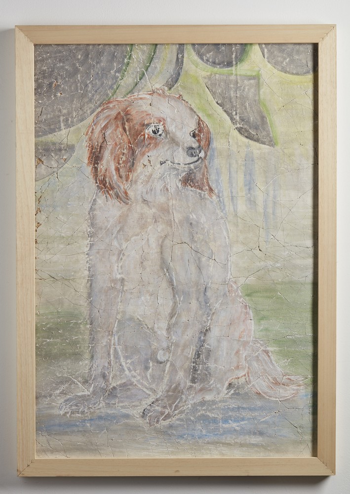 AUTORE NON IDENTIFICATO CANE. Strappo su supporto ligneo. Cm 65,00 x 84,00. . Cornice presente