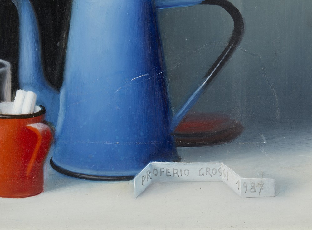 GROSSI PROFERIO (1923 - 2000) SENZA TITOLO. 1987. olio su faesite. Cm 70,50 x 50,50. firma, data