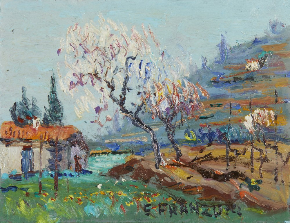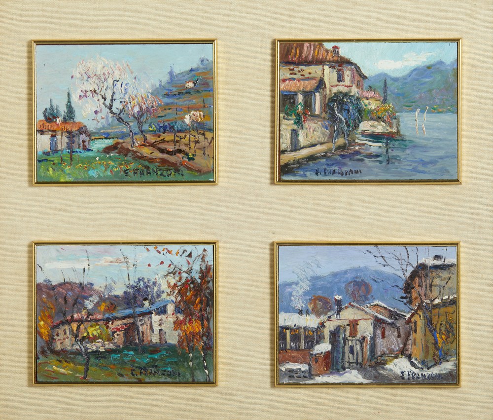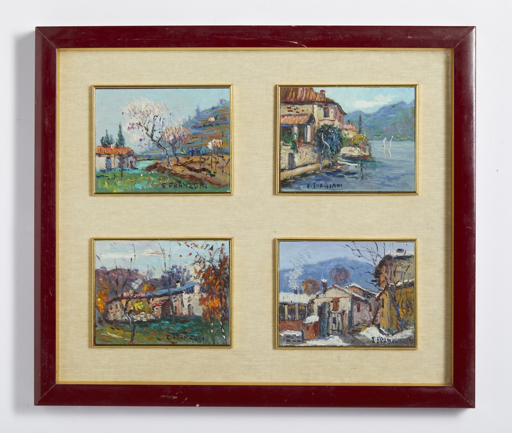 FRANZONI ENZO QUATTRO STAGIONI. Olio su tavola. Cm 47,00 x 40,00. firma