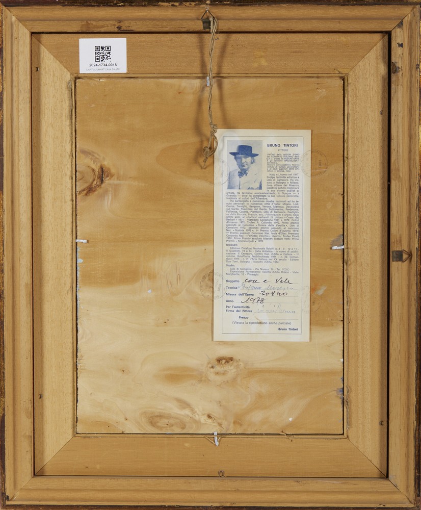 sul retro: certificato di autenticità dell'artista e timbro gruppo d'arte Pittori Toscani, Lido di Camaiore. Cornice presente