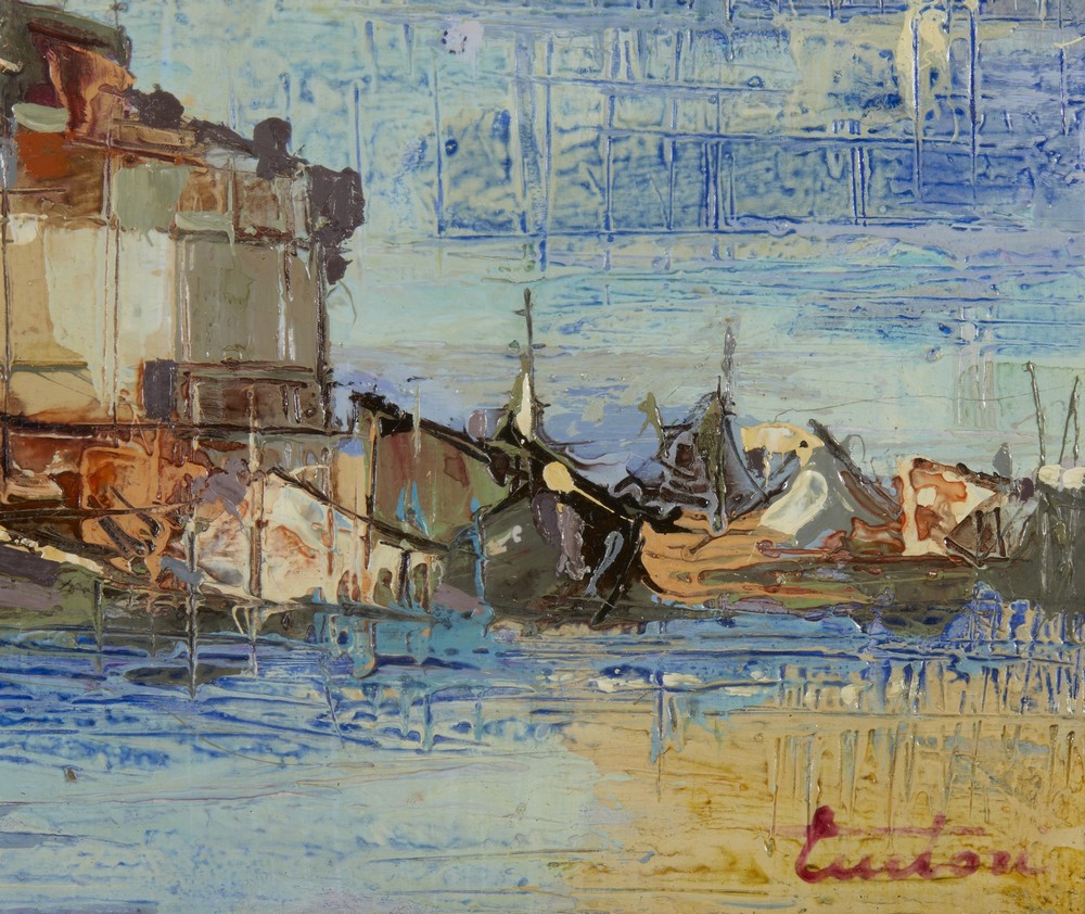 TINTORI BRUNO (1917 - 1991) CASE E VELE. 1978. Olio su tavola. Cm 30,00 x 40,00. firma
