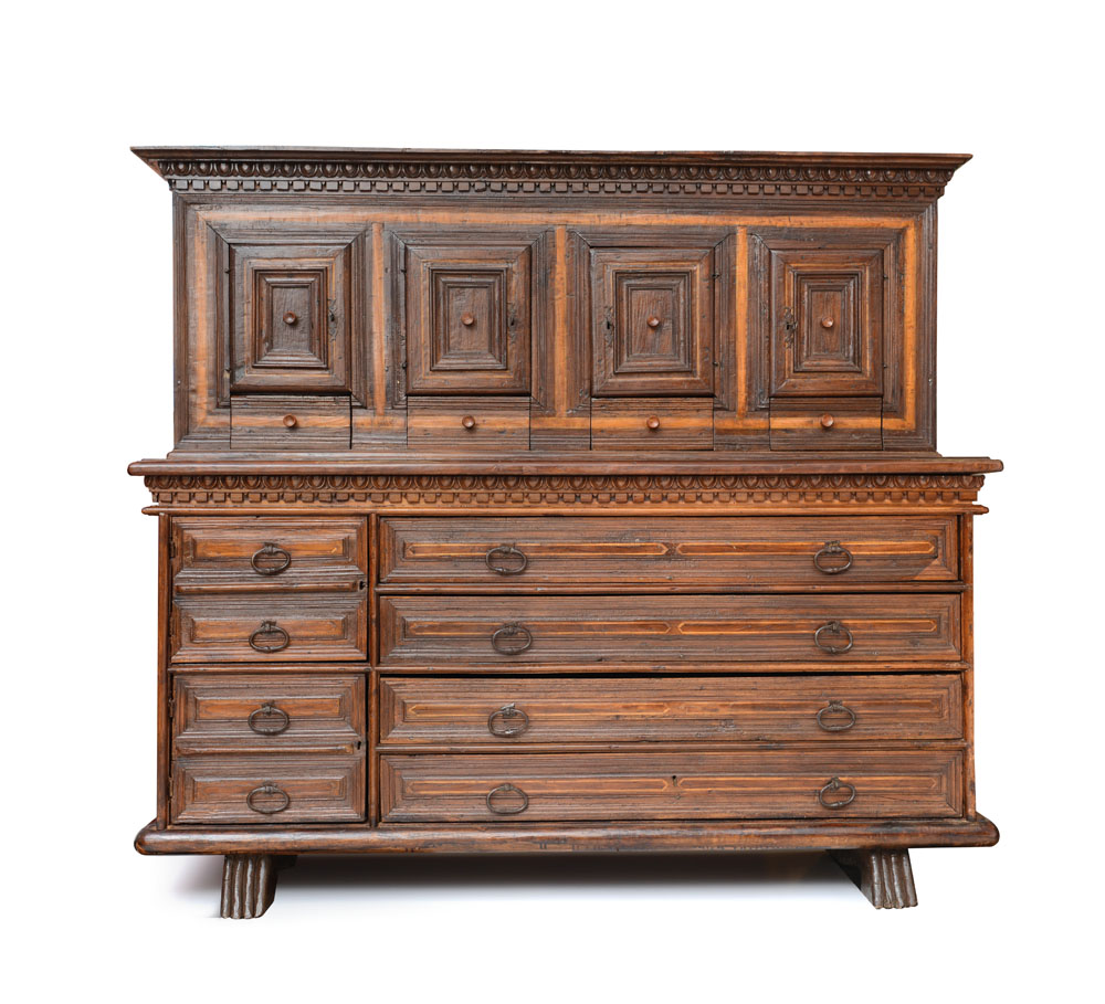 Lotto 585 | MOBILE DEL XVII SECOLO MOBILE DA SAGRESTIA IN NOCE, XVII SECOLO, a due corpi...