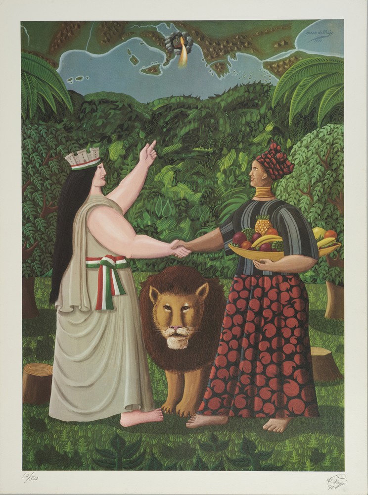 DE MAJO OSCAR (1911 - 1993) ITALIAN STEEL IN THE FIVE CONTINENTS-AFRICA. 1977. Litografia a colori. Cm 49,00 x 66,00. firma, data e tiratura a matita, es.62/320