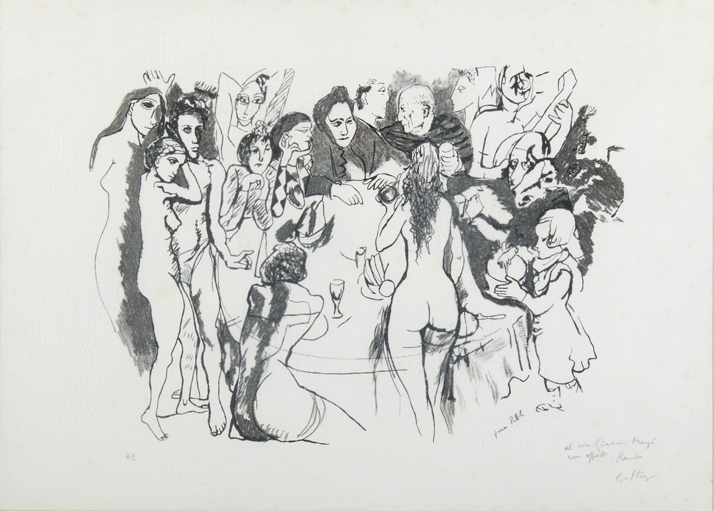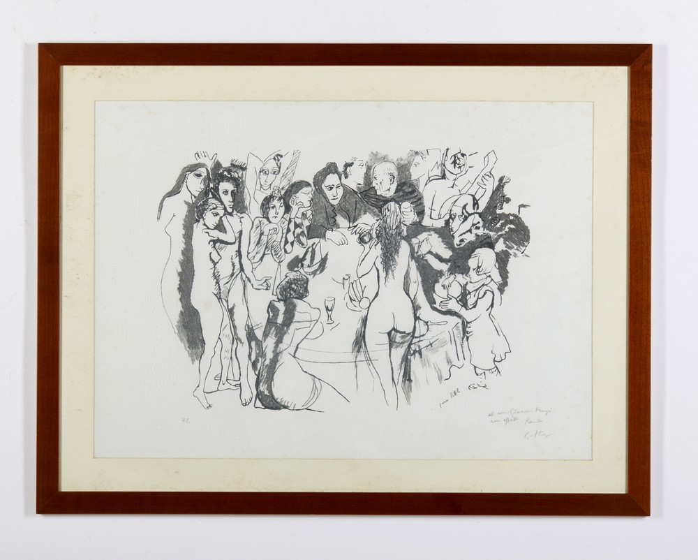 GUTTUSO RENATO (1912 - 1987) SENZA TITOLO . litografia. Cm 76,50 x 57,50. firma, tiratura e dedica ad personam a matita, es. H.C.