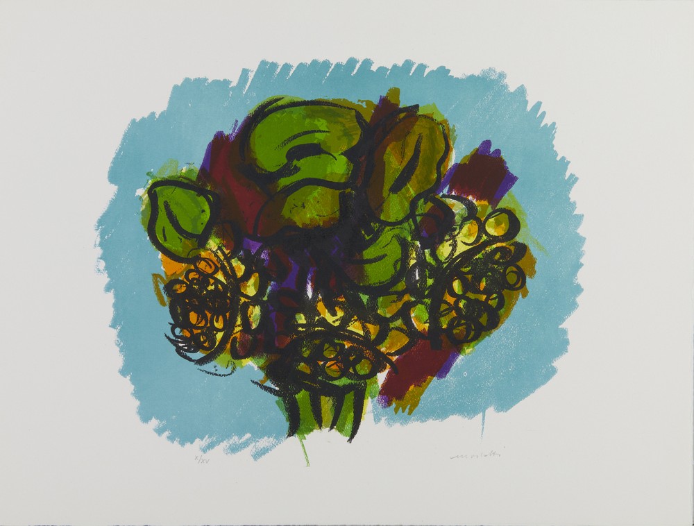 MORLOTTI ENNIO (1910 - 1992) CARTELLA COMPOSTA DA N.3 FOGLI: MAGNOLIA E GIRASOLI, (1977). litografia. Cm 65,00 x 49,00. firma e tiratura a matita, es. X/XV