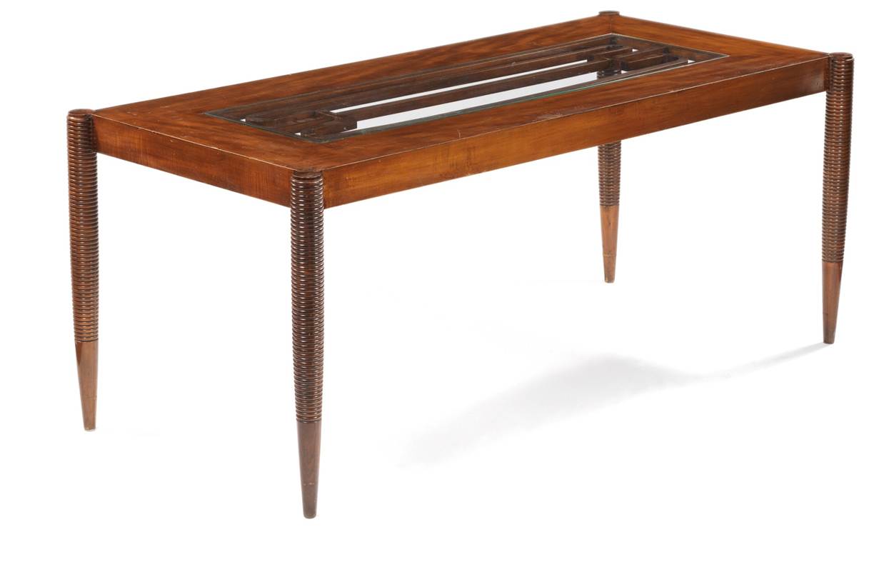 Ta volo Produzione: Colli, 1950 Struttura in noce e piano in cristallo cm 79 h x 185 x 82