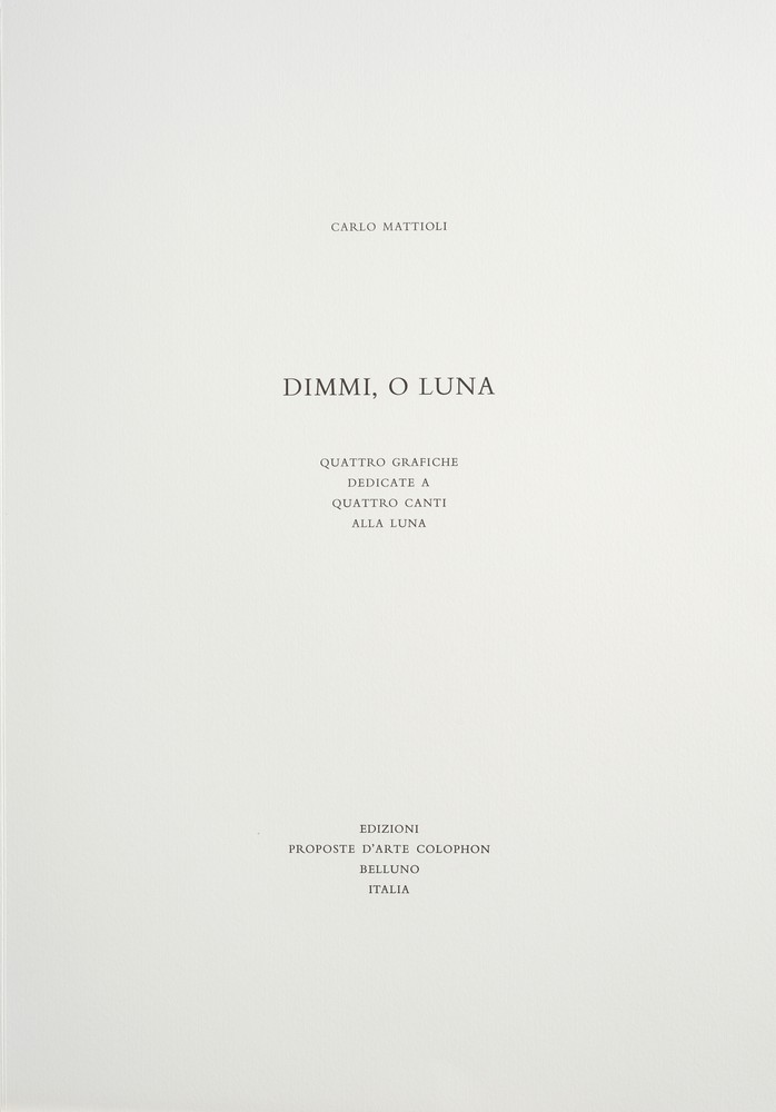 MATTIOLI CARLO (1911 - 1994) DIMMI O LUNA . 1993. acquaforte. Cm 35,50 x 49,50 x 3,00. Lotto composto da quattro grafiche dedicate a quattro canti alla luna ( Leopardi, Verlaine, Schelly, Goethe)