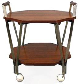Ico Parisi (Palermo, 1916 - Como, 1996) Carrello ottagonale Produzione: Stildomus, 1960 Struttura in legno di teak, profili in alluminio cm 55 h x 60 di lato
