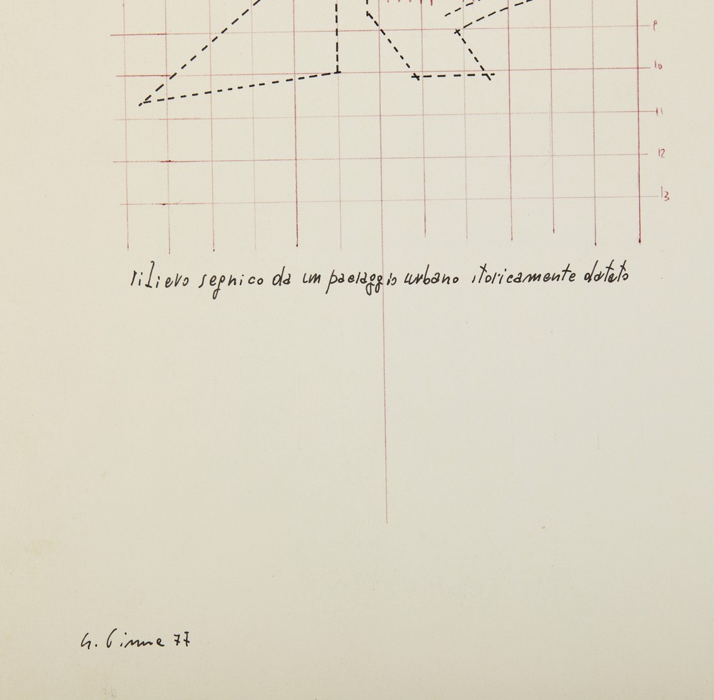 PINNA GAETANO (n. 1939) ANALISI SEGNICA DI PAESAGGIO URBANO. 1977. china e collage su carta. Cm 70,00 x 50,00. firma, data