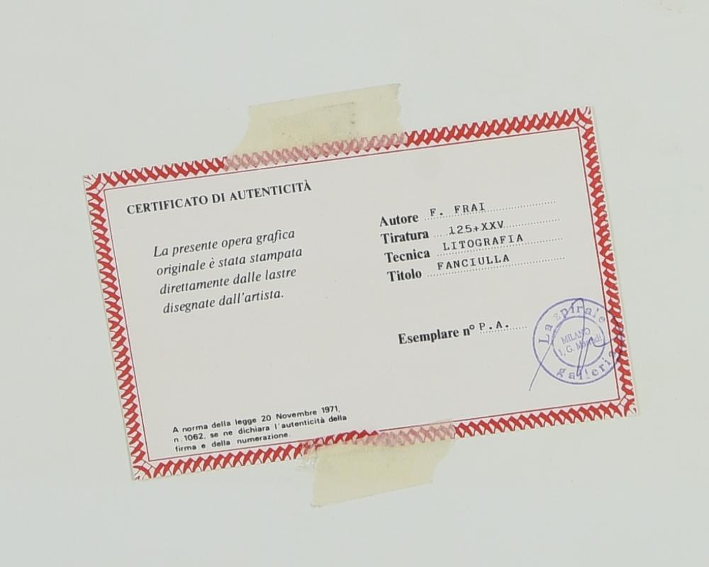Felicita Frai FANCIULLA litografia, cm 50x70; es. 103/150 firma, tiratura,...