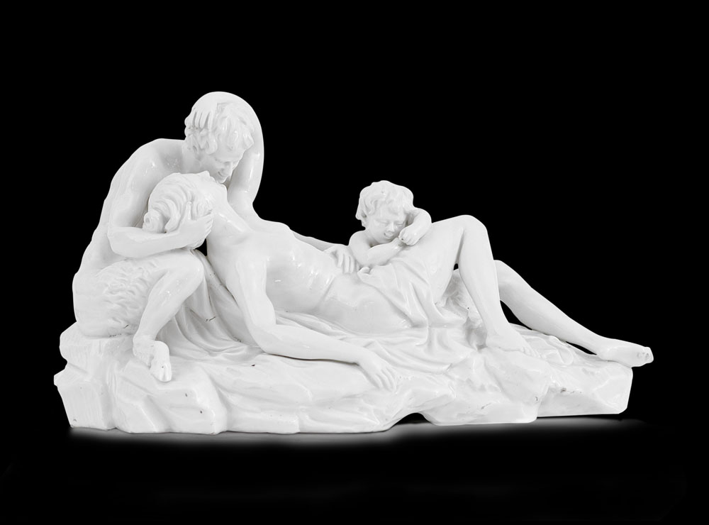 GRUPPO IN PORCELLANA BIANCA, FRANKENTHAL, 1779, raffigurante Venere e fauno su base a roccia; datata; sbeccature.