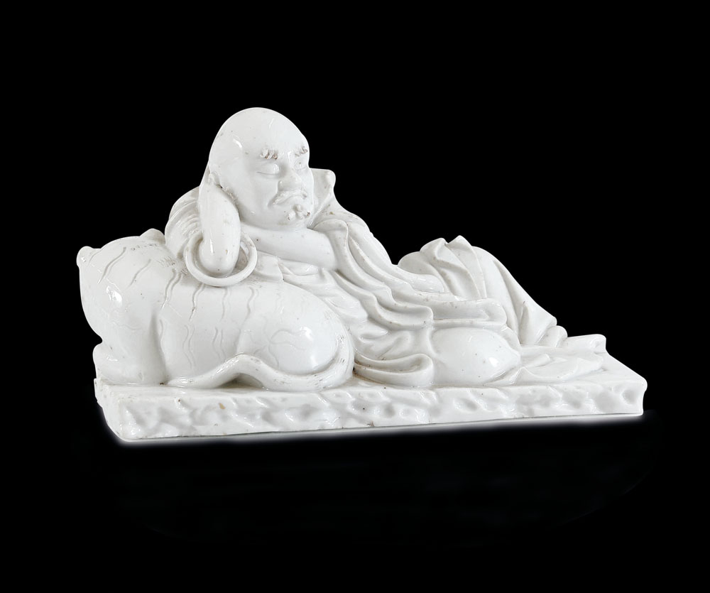 CINA MAGOT DORMIENTE IN PORCELLANA BIANCA, CINA, XVIII SECOLO adagiato su...