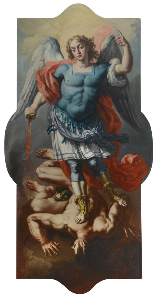 ROSSI NICOLA MARIA 1690 - 1758San Michele Arcangelo Olio su tela sagomata, cm...