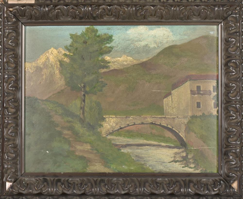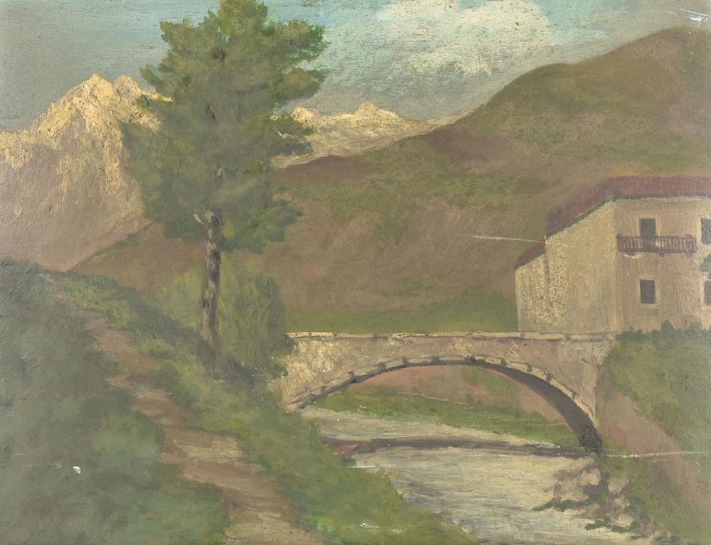 Anonimo PONTE SUL TORRENTE olio su cartone telato, cm 28x34