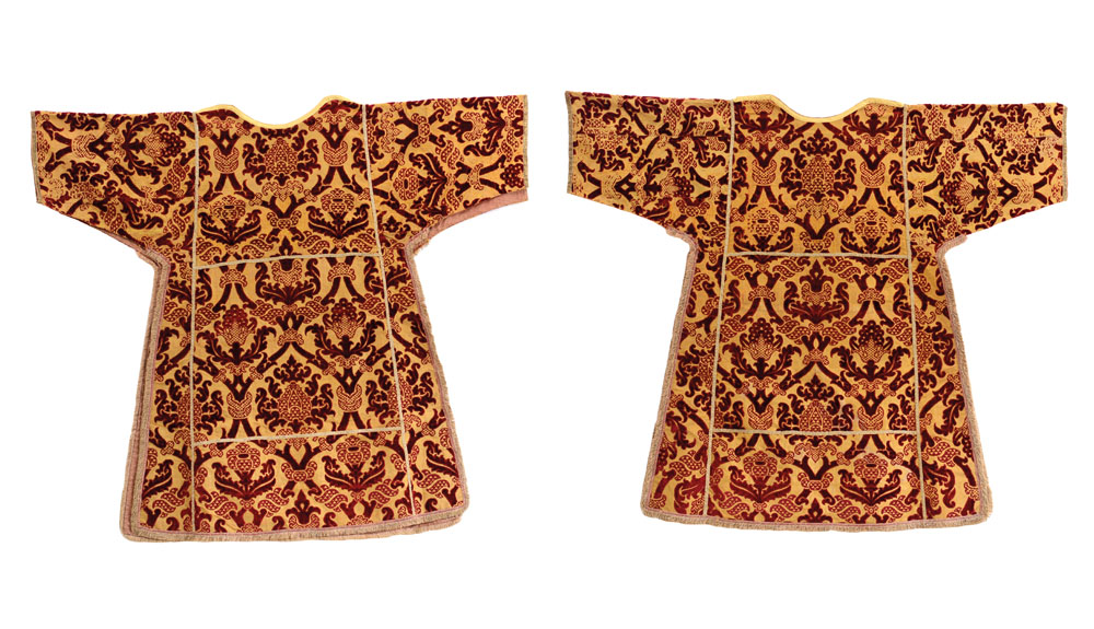 OGGETTISTICA VARIA DUE DALMATICHE IN VELLUTO ROSSO CESELLATO, XVII SECOLO,...
