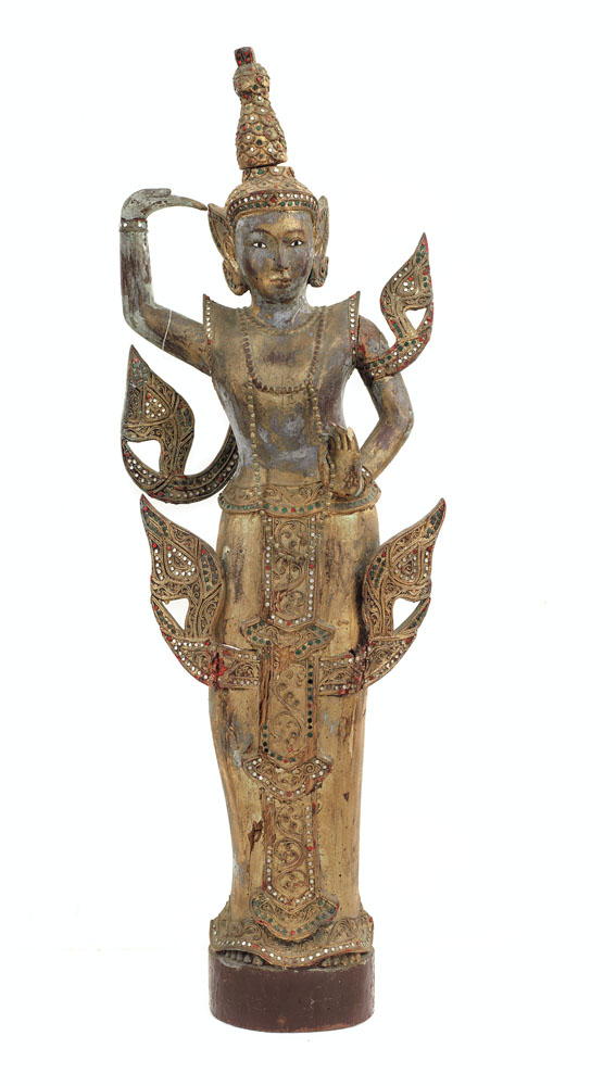 Lotto 696a | ARTE ORIENTALE DIVINITA' IN LEGNO SCOLPITO E DORATO CON APPLICAZIONI VITREE,...