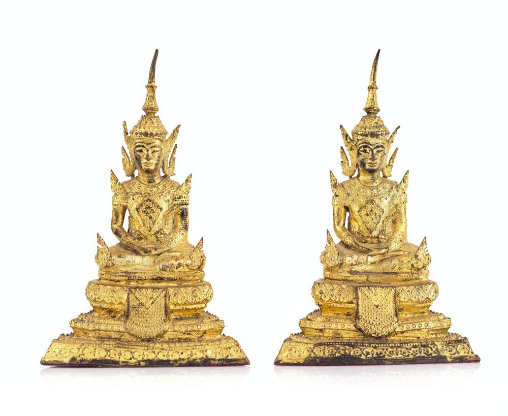 SCULTURA DUE SCULTURE IN BRONZO DORATO, TAILANDIA, XIX SECOLO, raffiguranti...