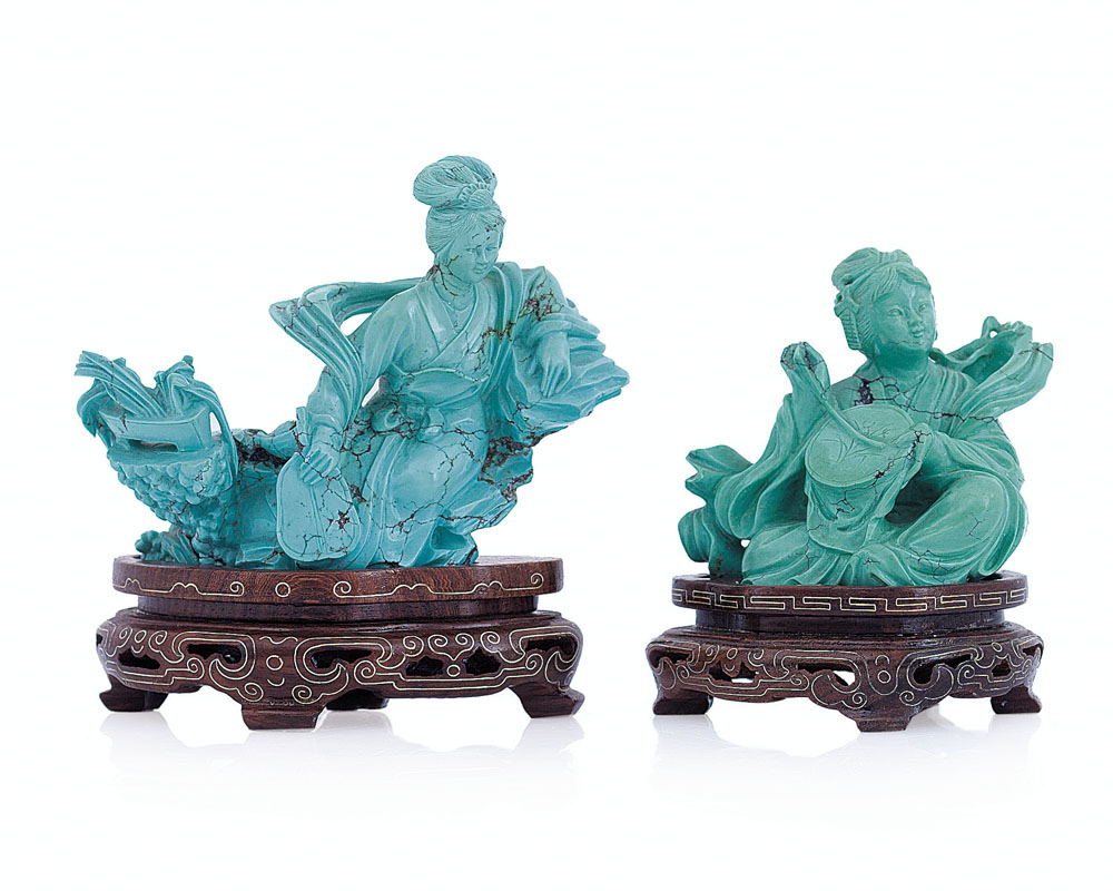 ARTE ORIENTALE DUE SCULTURE IN TURCHESE, CINA, INIZIO XX SECOLO, raffiguranti...