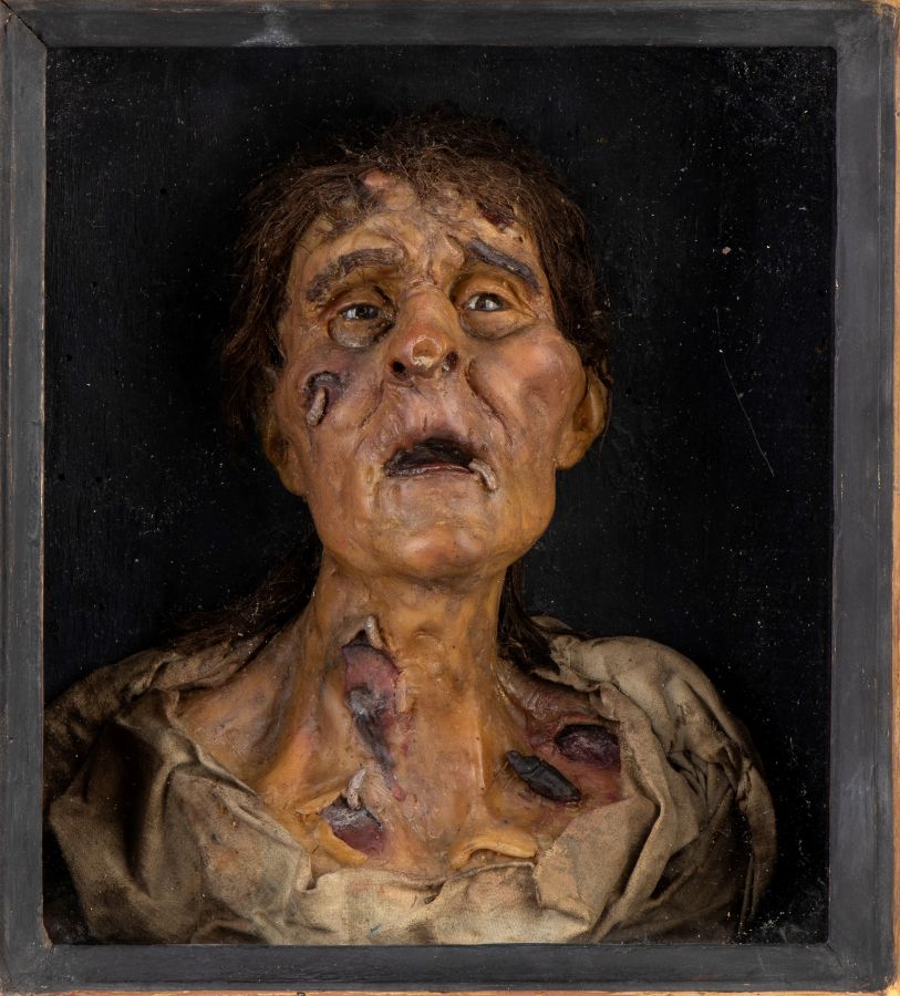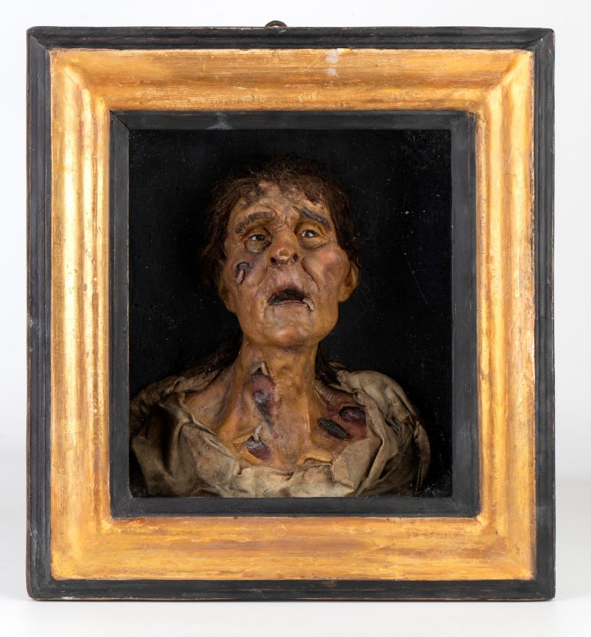 Inoltre, è da evidenziare che la ceroplastica, l’antica arte di lavorare la cera, fu usata fin dall’antichità in ambito funerario e dal XVII secolo fu largamente impiegata anche per la riproduzione a scopo didattico di modelli anatomici, zoologici e botanici. Nel corso del tempo, anzi, la ceroplastica fu impiegata soprattutto per le sue rappresentazioni in ambito anatomico. Questi manufatti non si limitavano a riprodurre la realtà, ma erano spesso ispirati a una visione di essa particolarmente drammatica e grottesca. Tali rappresentazioni avevano la funzione di esorcizzare la malattia, il dolore e la pestilenza che dilagava a quel tempo. La teca qui in oggetto si può collocare nell’ambito della produzione dell'abate Giulio Gaetano Zumbo, principale esponente della ceraplastica seicentesca. Tali composizioni ebbero uno straordinario successo e una fortuna artistica che perdurò per oltre un secolo in Italia e Oltralpe.