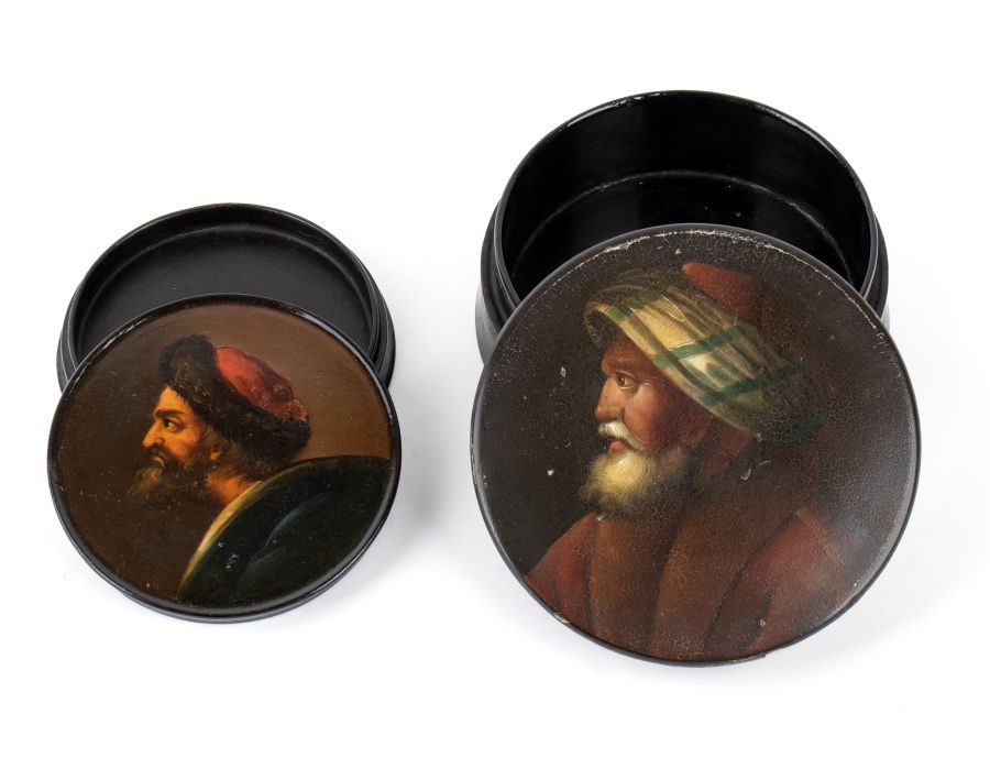 Due scatole russe in lacca XVIII-XIX secolo Peso: 170 gr.
