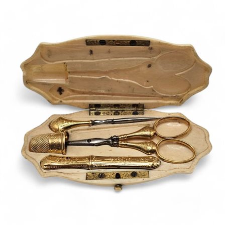 Necessaire francese in oro con custodia in avorio fine XIX secolo