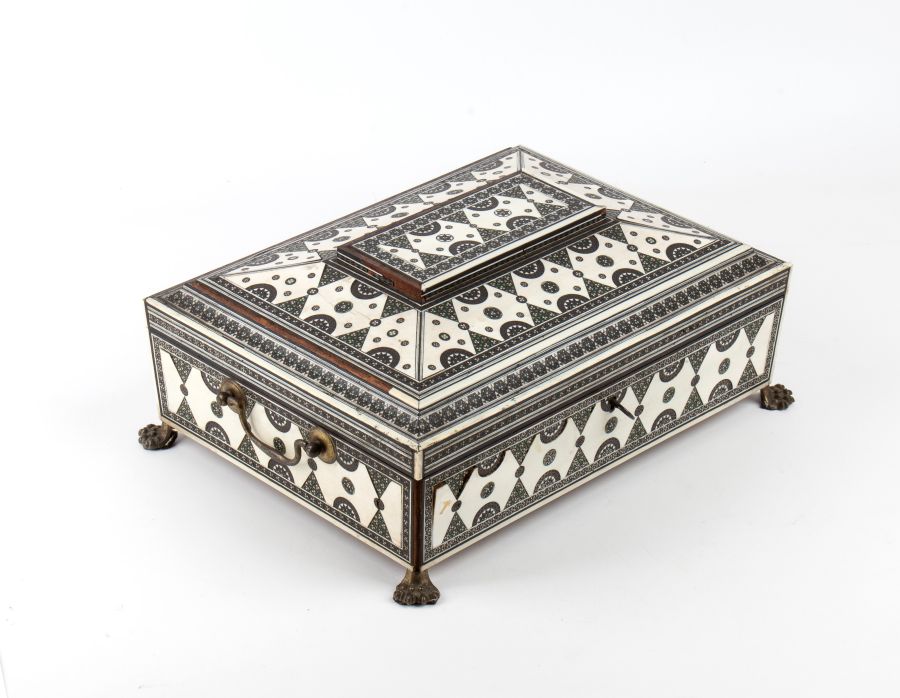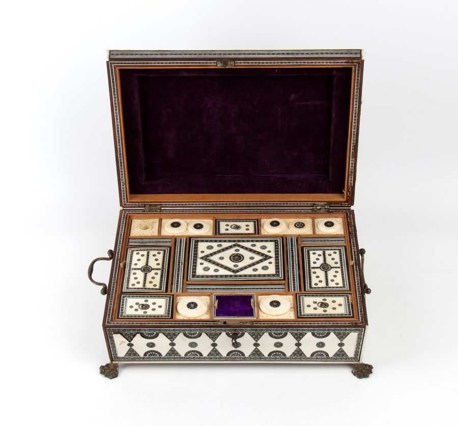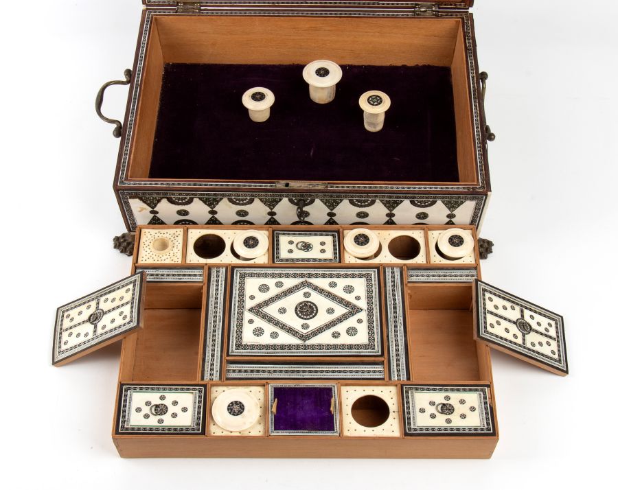 Scatola scrittoio da viaggio intarsiata in avorio Anglo-indiana XIX secolo