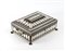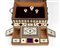 Altezza x larghezza x profondità: 24 x 32 x 11 cm. Peso 2285 gr. di forma rettangolare, poggiante su quattro piedini di forma leonina, con coperchio incernierato. Presenta una decorazione in micromosaico sadeli, una tecnica decorativa tradizionale che combina l'arte del micromosaico con motivi geometrici intricati e complessi. Il coperchio all'interno è rivestito di velluto viola e rivelare vari scomparti con coperchi ad innesto che presentano la stessa tipologia di decorazione dell'esterno.
