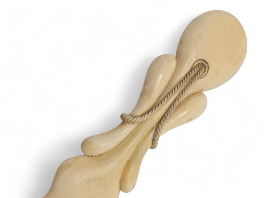 Altezza x larghezza x profondità: 35,5 x 4,3 x 1,7 cm. Peso: 155 gr in avorio di elefante scolpito (Elephas maximus Linnaeus, 1758 or Loxodonta africana Blumenbach, 1797) inciso sul fronte