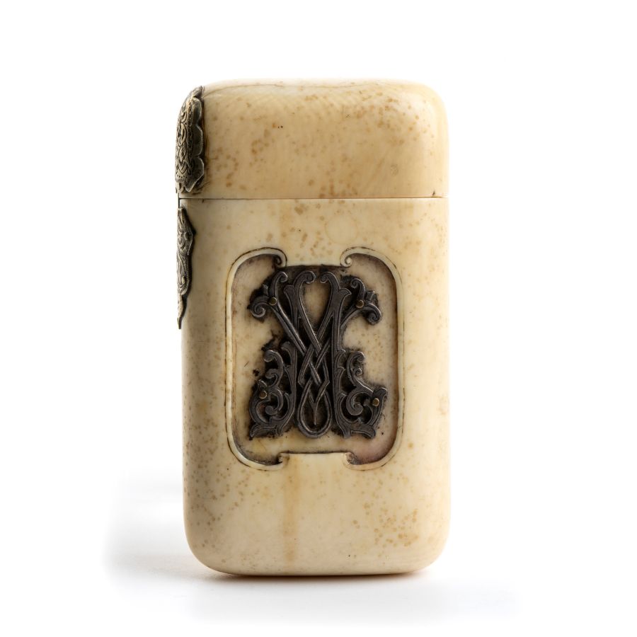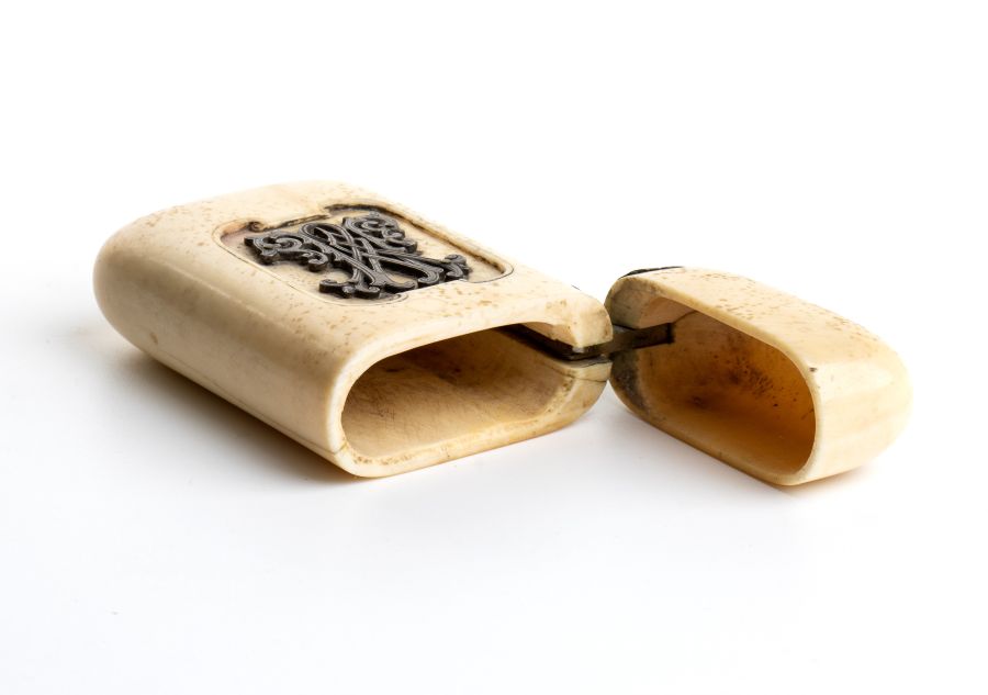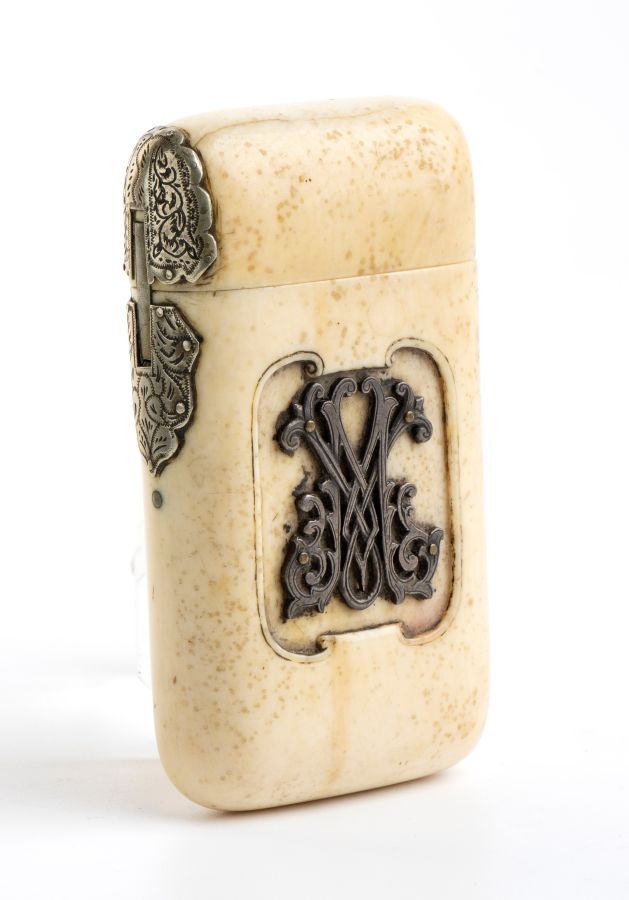 Scatola portasigarette in avorio Francia, XIX secolo Altezza x larghezza x profondità: 9,6 x 5,2 x 2,3 cm.