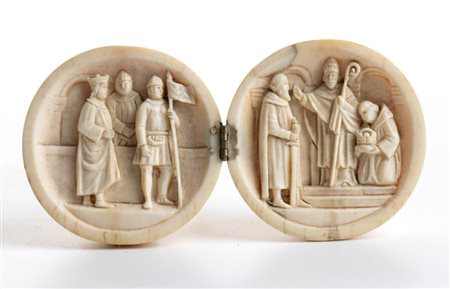 Dittico a sfera pieghevole in avorio Francia, Dieppe (?), XIX secolo