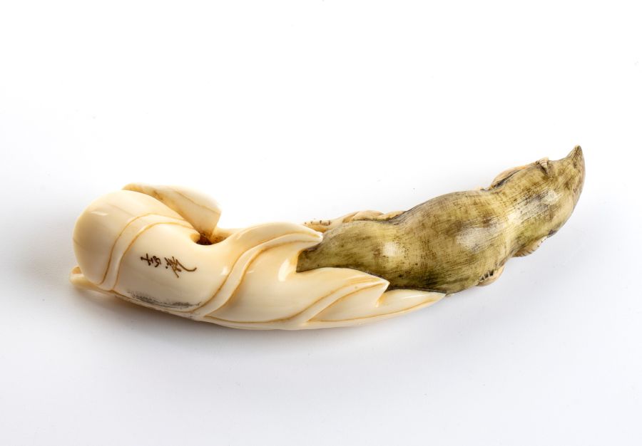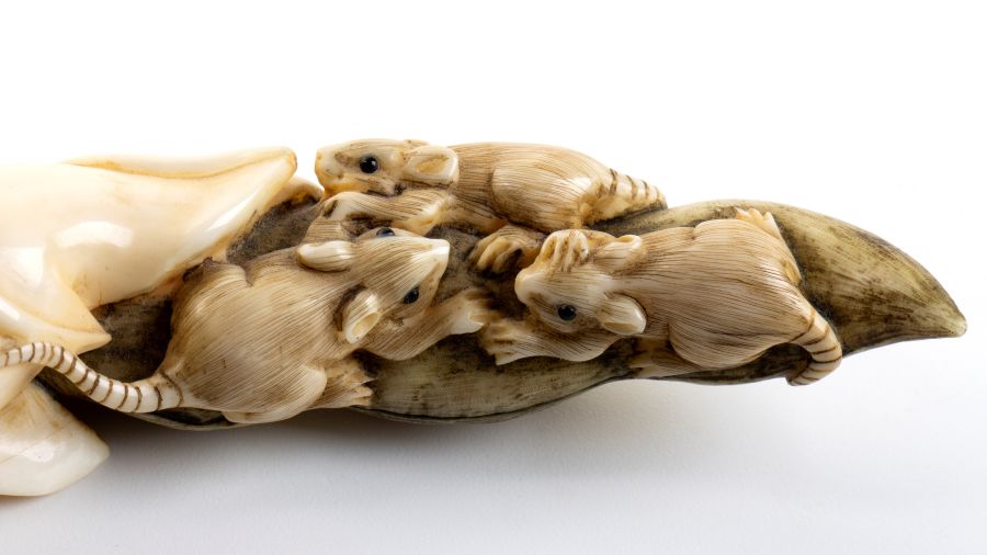 Okimono giapponese con topi in avorio Periodo Meiji, XIX secolo