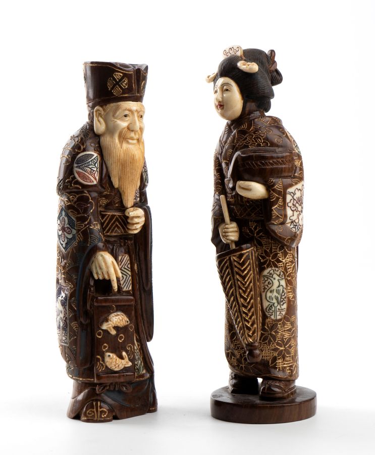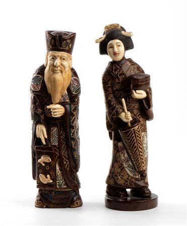 Coppia di okimono giapponesi in osso Periodo Meiji, 1868-1912 Peso totale: 522,4 gr.