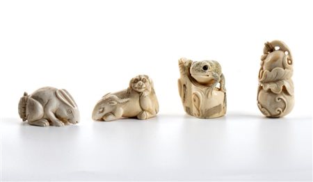 Gruppo di quattro Netsuke cinesi in avorio Fine XIX, inizio XX secolo