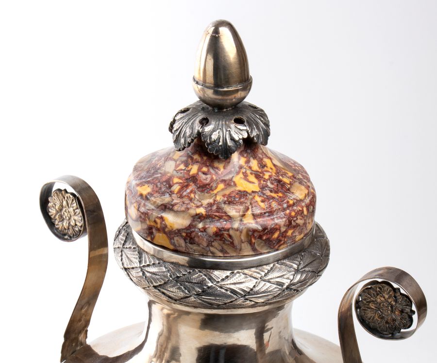 Importante coppia di vasi italiani biansati in argento e marmo Roma, prima metà del XIX secolo
