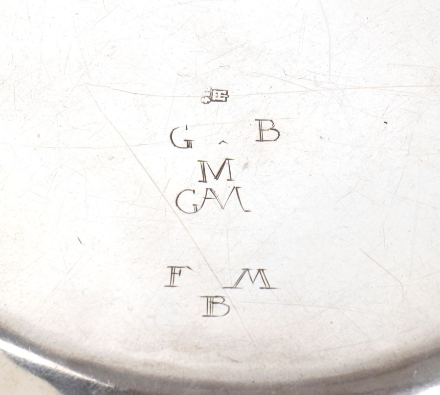 Punzonato con il marchio della "Torretta" in uso alla corporazione degli Orefici di Genova e del sottostante millesimo ad indicare l'anno 1784.