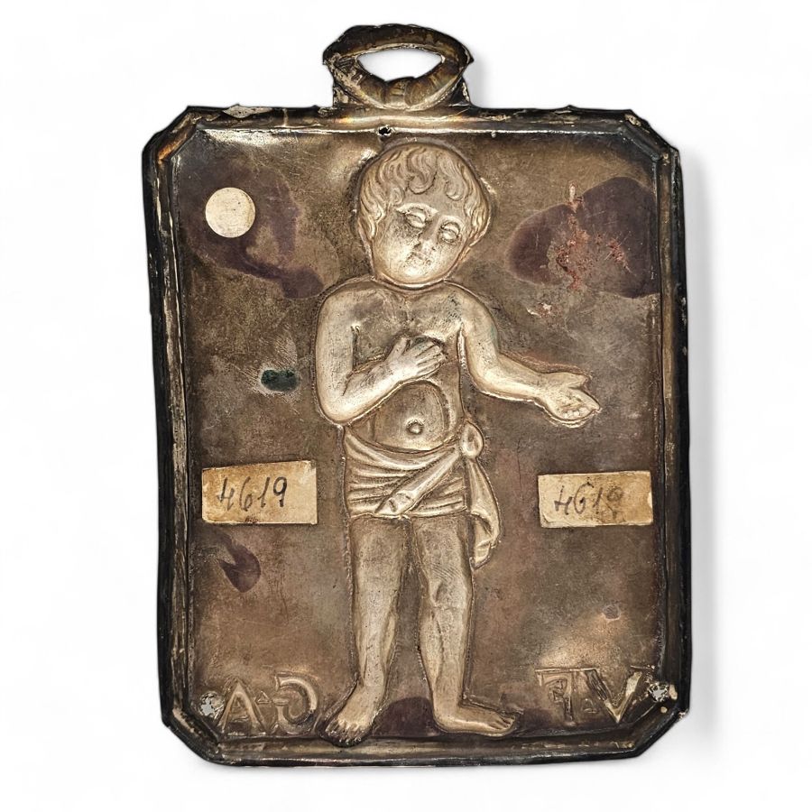 Il lotto in questione è composto da un ex-voto raffigurante un bambino. Probabilmente una richiesta di guarigione di un neonato o bambino, che con questa raffigurazione voleva ricollegare il miracolato o richiedente di miracolo alla figura di Cristo, nell'iconografia del Gesù Bambino, modalità tipica delle tavolette votive, che infatti riflettono un impegno rituale di un richiedente, ossia colui che fa il voto, che può coincidere con il miracolato, colui che ha subito un danno, e la divinità che intercede.