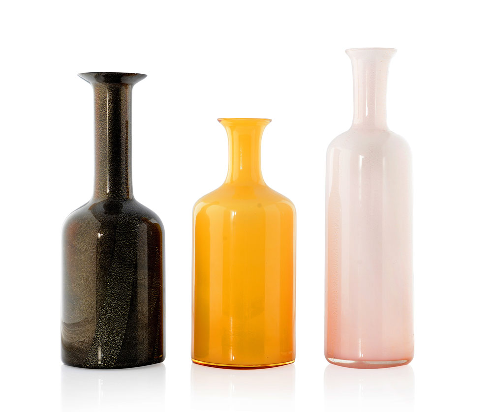 SALVIATI TRE BOTTIGLIE IN VETRO, MURANO, ANNI '70, di cui due in vetro...