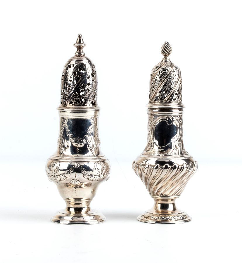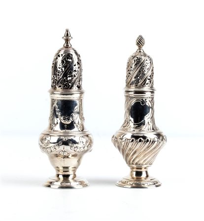 Due caster georgiani inglesi in argento Londra 1762 e 1767768 Peso totale: 380 gr.