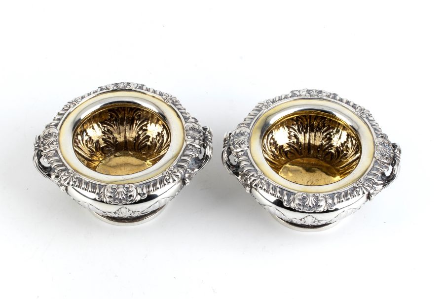 John Tapley Coppia di saliere William IV inglesi in argento Londra 1835 Peso totale: 630 gr.