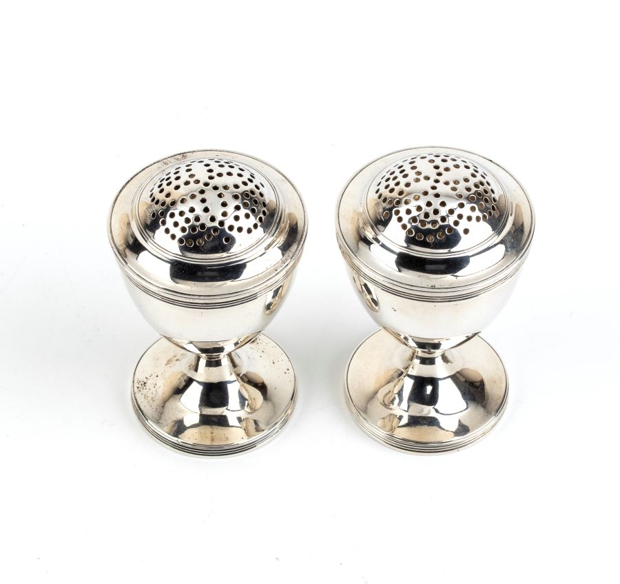 Stephen Adams II Coppia di pepiere georgiane inglesi in argento Londra 1789 Peso totale: 170 gr.