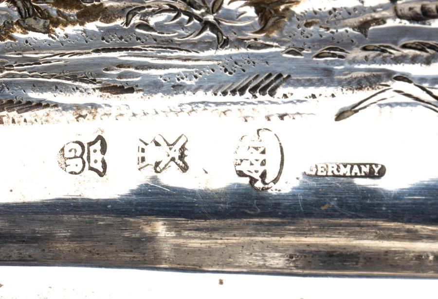 Punzonato con i marchi in uso ad Hanau dal 1891 al 1906, argentiere Georg Roth & Co. Classificazione dello stato di conservazione: **** buono.