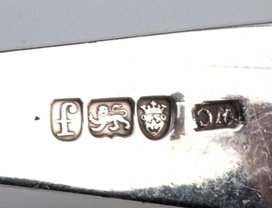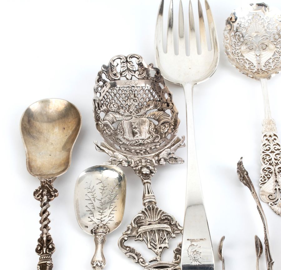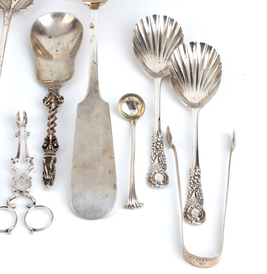8) forbice con cucchiaini: solo marchio Londra, argentiere non identificabile.