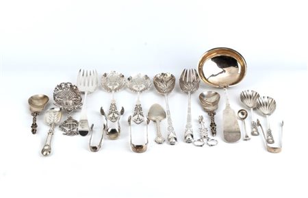 Gruppo di 14 posate continentali in argento XVIII - XX secolo