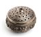 Altezza x diametro: 17,5 x 23 cm. Peso: 1466 gr di forma circolare, il corpo riccamente sbalzato e cesellato raffigurante scene tradizionali della mitologia birmana e rifinita da numerosi decori. Il coperchio ad innesto presenta una decorazione floreale traforata. Stato di conservazione **** buono.