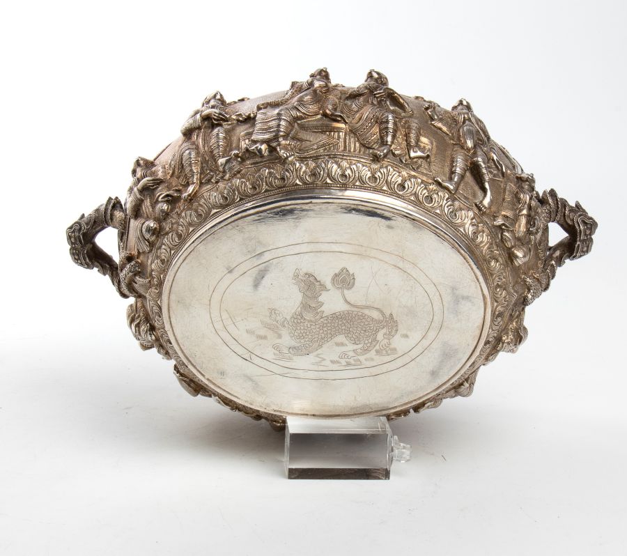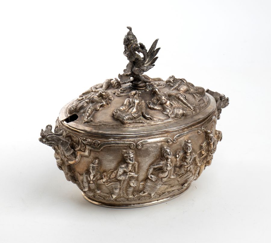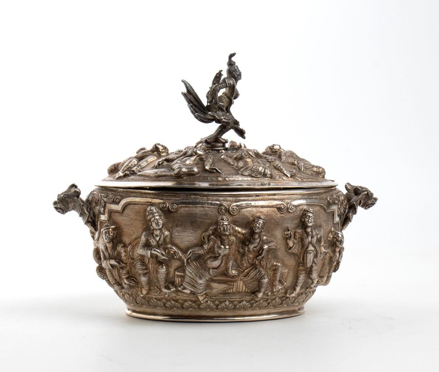 Zuppiera Birmana in argento XIX secolo Altezza x larghezza x profondità: 17,5 x 22,5 x 15 cm. Peso: 1006 gr