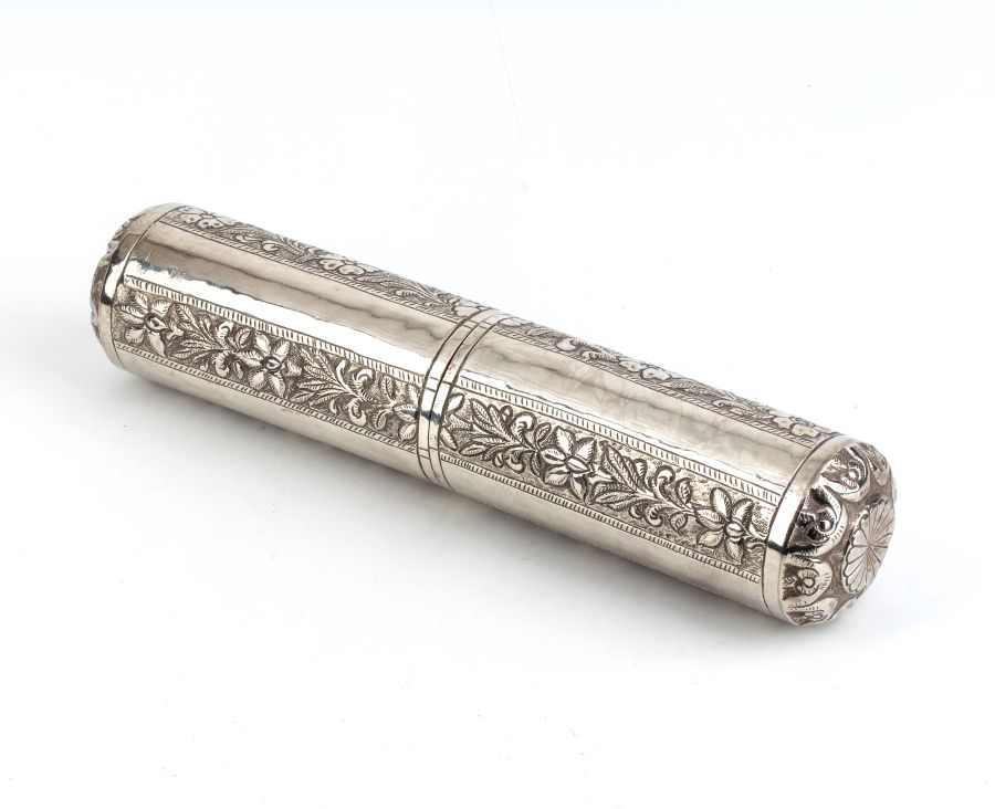 Porta pergamena in argento XIX secolo Altezza x larghezza x profondità: 28 x 6,5 x 6,5 cm. Peso: 500 gr.