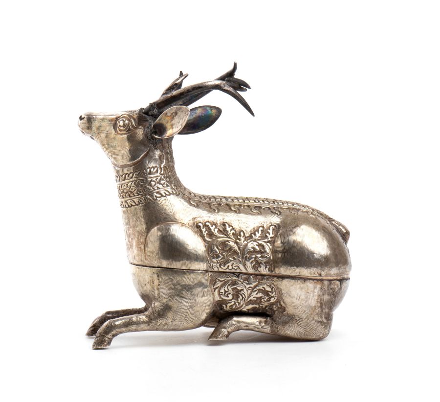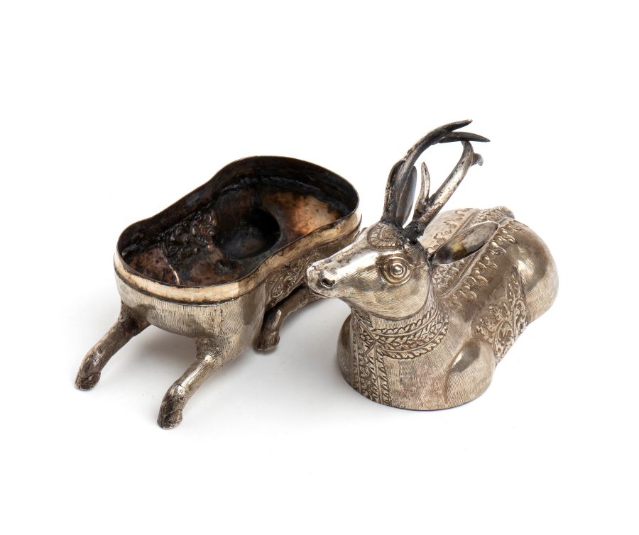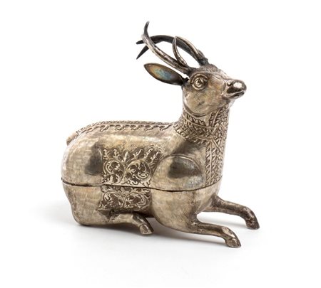 Altezza x larghezza x profondità: 15 x 13 x 5,5 cm. Peso: 214 gr. a forma cervo khmer finemente decorata. Classificazione dello stato di conservazione: **** buono.